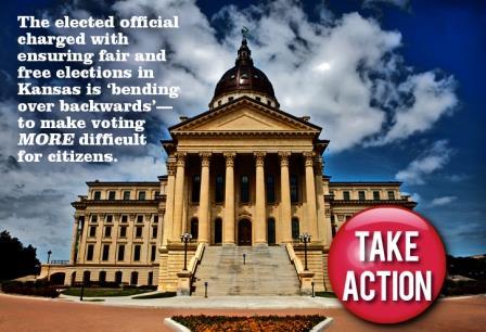 In other words, the elected official charged with ensuring fair and free elections in Kansas is “bending over backwards”—to make voting MORE difficult for citizens.