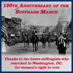 Want to help honor the thousands of women who fought for the vote? The Delta Sigma Theta Sorority, joined by a number of women’s organizations including the League of Women Voters, has organized a parade to commemorate the 100th anniversary of the 1913 Woman Suffrage Parade in Washington, DC. The parade kicks off this Sunday March 3, 2013, at 9:00am ET by the U.S. Capitol.