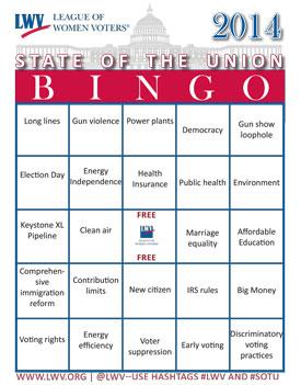 Are you ready to play along and participate in your democracy? Be sure to follow us on Twitter, too: we’ll be live-tweeting as we watch the address, and we’ll be sure to call out when the President’s speech hits on our boards. Find us at @LWV and join the conversation by using the hashtags #LWV and #SOTU. Be sure to send any photos our way, and we’ll share and retweet!
