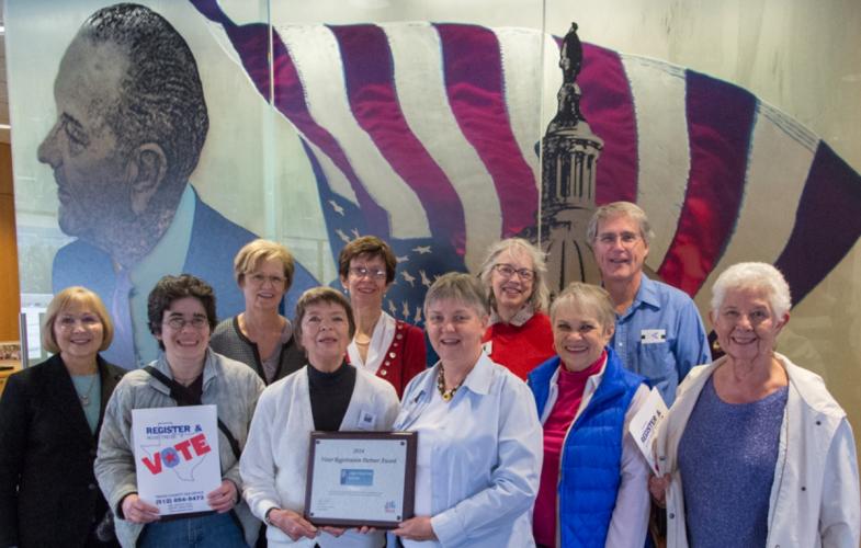 Earlier this year, the League of Women Voters of the Austin (TX) Area was among those honored for their contributions during Travis County's Celebration of Democracy, receiving the Partner Recognition Award. We were recognized for our work hosting voter registration stations at libraries, public forums, college and housing communities, conventions, and many other events from early September through our last day to register to vote prior to the November election.