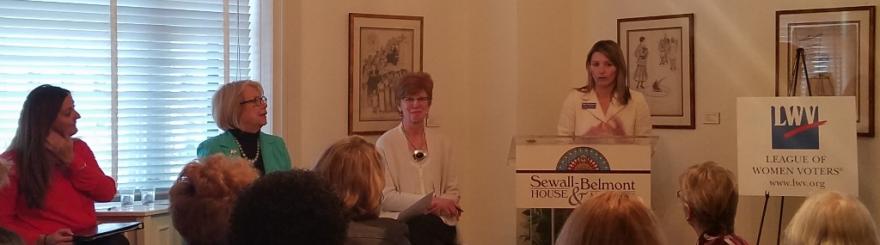 With Women’s History Month 2016 wrapping up, League president Elisabeth MacNamara joined with other women’s political and history experts at the Sewall-Belmont House and Museum, home of Alice Paul’s National Woman’s Party, to discuss women’s leadership and public service and their impact on public policy in both a historical and contemporary context. President MacNamara was joined by Page Harrington, director of the Sewall-Belmont House, Ann Lewis, former director of communications for he White House and Liz Wing, senior advisor at the Women’s Bureau of the U.S. Department of Labor for the Women and Politics: Advocacy, Activism and Influencing Policy event.